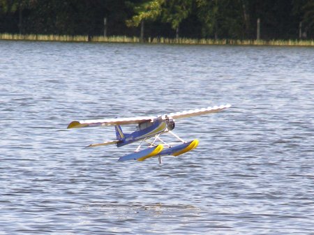 Stanley had his Ripmax Trainer which has flown a few times off water already and looks very good, fitted with an OS55AX and has bags of power. Lots of other nice models on floats, this one was seen before at the last flyin and looks like an acro wot with a very nice colour scheme.