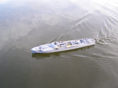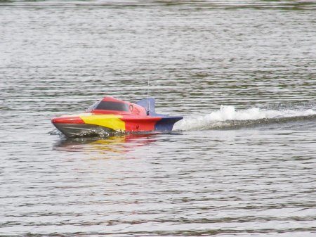 Gerry had his Skeadu on an action man Dingy! there were a few other helis also on floats If you look close you can see there are two men on board hanging on for all there worth in the Dingy The rescue boat was kept going as usual, there were also a half dozen or so model boats as well, stanley had his big 26cc petrol racing boat and dick had a nice very well detailed battle ship shown below. Dungannon was blessed with superb weather and flying was from early morning till dark.