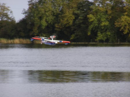 Conditions were fairly good as can be seen from the sky in this shot and the water was fairly smooth most of the day, wind direction was not ideal but you cant have everything! First time off the water for my New Seamaster after I test flown last week with the wheels on.